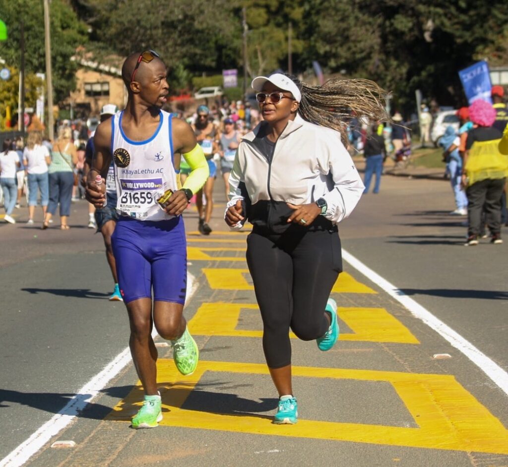 - Having training partners to train with and hold each other accountable got me through the training. Having to be on a 14 to 16 week training program is not easy, there’s long runs that you need to do, for example, Wednesdays 30km long run or Tuesday hill repeats – those session are tough and it’s always great to have people that can encourage each other. I trained with my coach Vongani Mashile from Skhindi Gang Coching and Eric Makhuvele a fellow Skhindi Gang Athlete, we held each other accountable and one wouldn’t miss training because you know there’s people waiting to run with you. Some days were harder than others but we pushed each other through it.